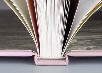 重厚感のある従来タイプのアルバムの製本方法です。片面印刷した2枚の紙を貼合わせて1ページとします。ページのレイアウトがすべて見えます。ページの厚みが出て強くなります。